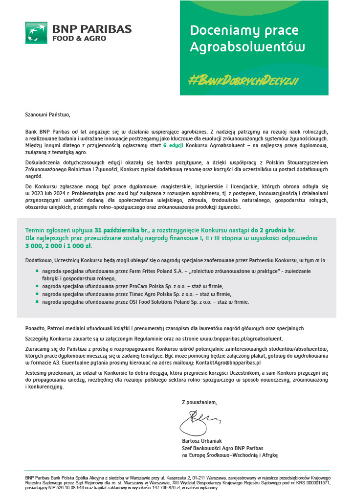 Zaproszenie do Konkursu Agroabsolwent 2024